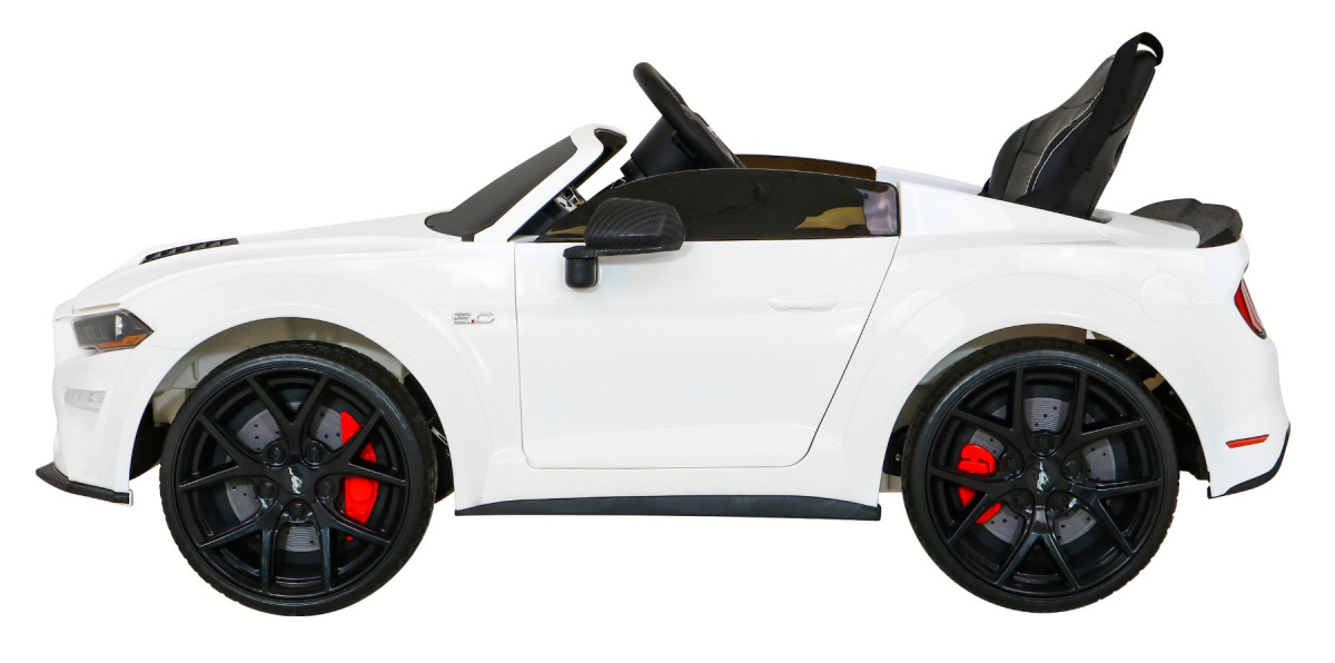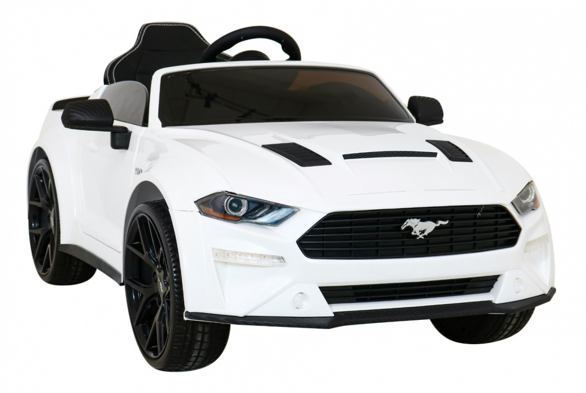 Autko Ford Mustang GT na akumulator dla dzieci Biały + Regulacja siedzenia + Audio LED + EVA + Wolny Start