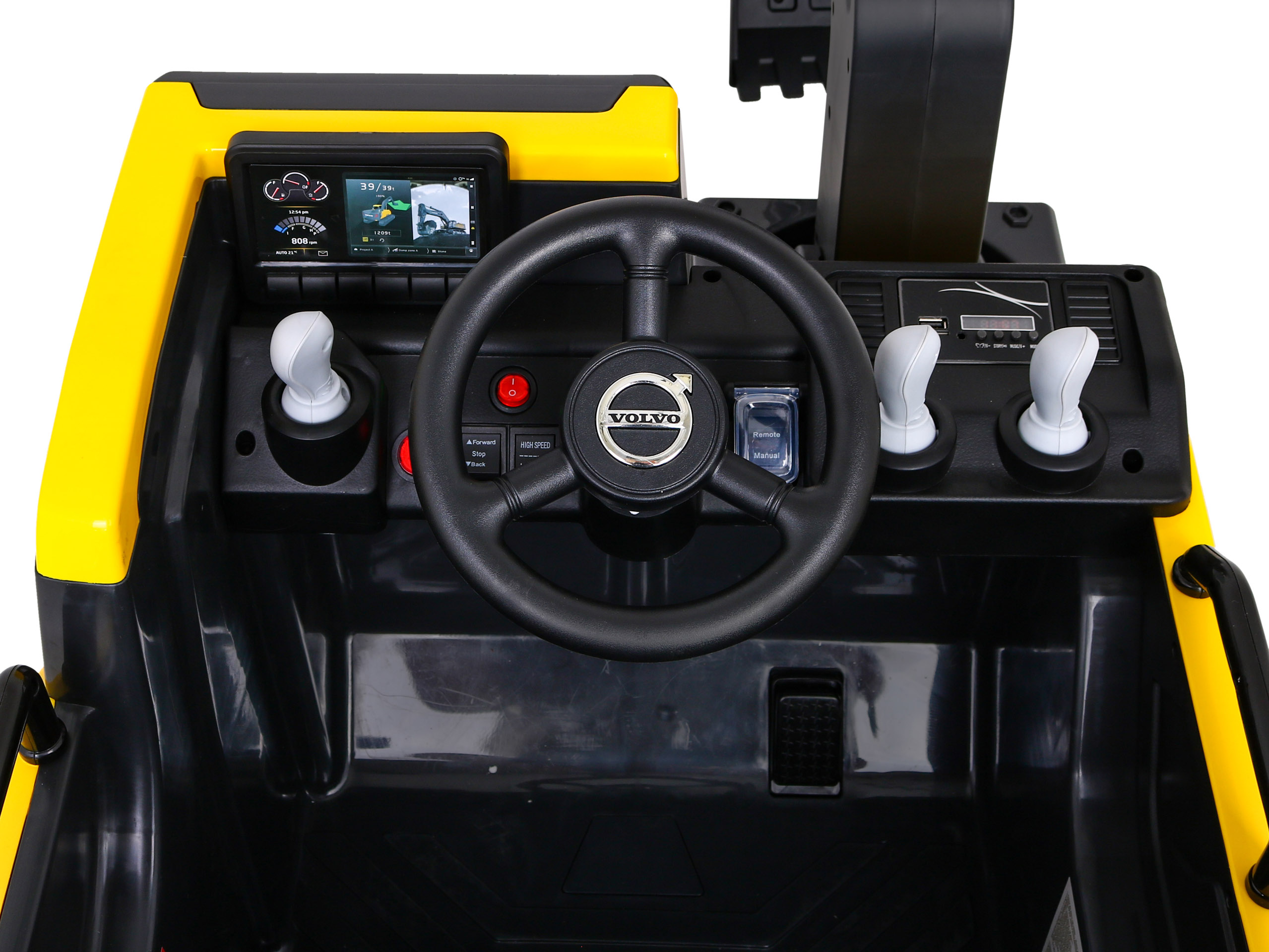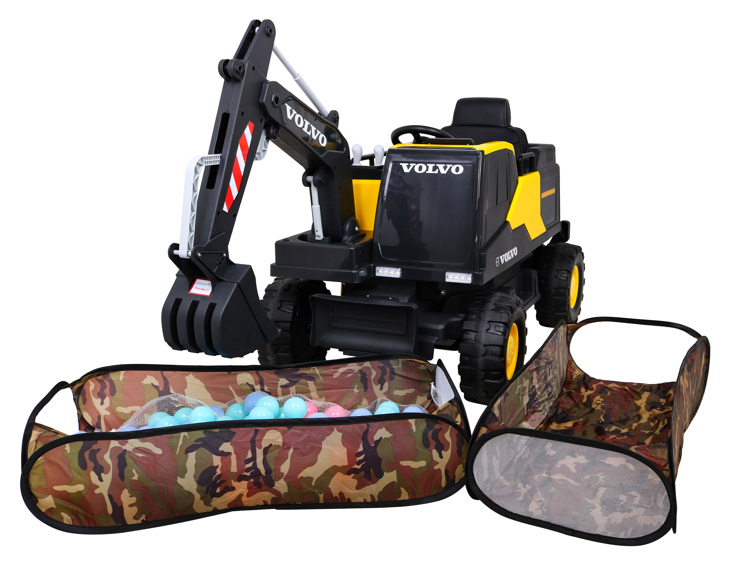 Koparka Volvo na akumulator Żółta + Ruchoma łyżka + 2 baseniki + 150 piłek + Pilot + Radio MP3 + LED
