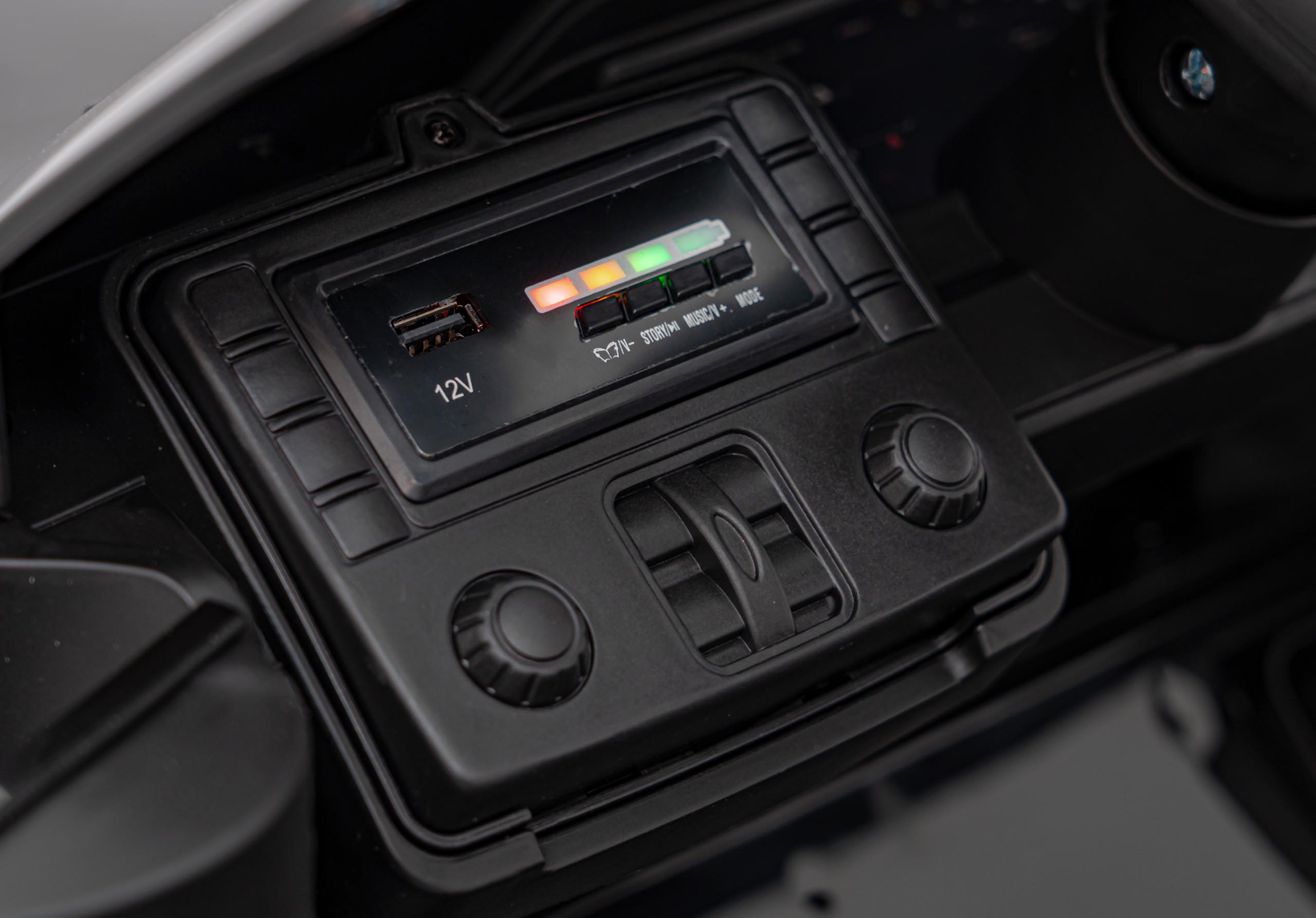 | Panel audio | MP3, wgrane melodyjki, USB, Bluetooth, AUX, przyciski z melodyjkami i klaksonem w kierownicy |