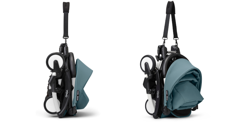 YOYO³ składa się do niewielkich rozmiarów, ale przede wszystkim składa się prosto i intuicyjnie. Odginana do dołu rączka umożliwia przekształcenie go w krzesełko dziecięce, przy jednoczesnym zablokowaniu hamulca nożnego. Wygodny pasek na ramie ułatwia przenoszenie wózka.