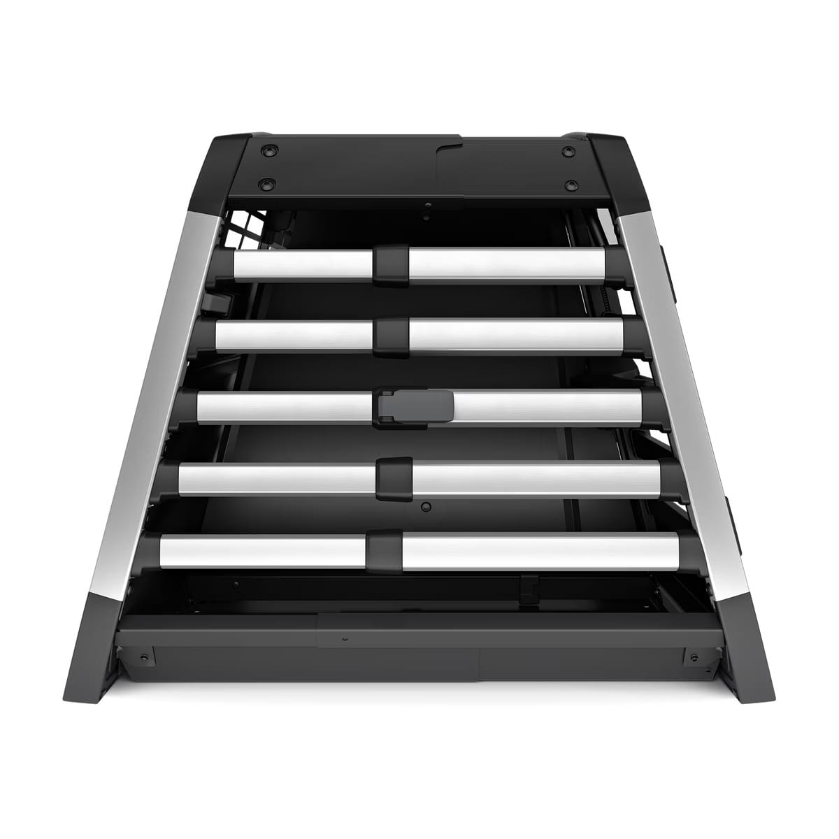Zaokrąglone krawędzie i regulowana głębokość pozwalają idealnie wpasować klatkę w bagażnik – bez nieprzyjemnych dźwięków i wibracji.