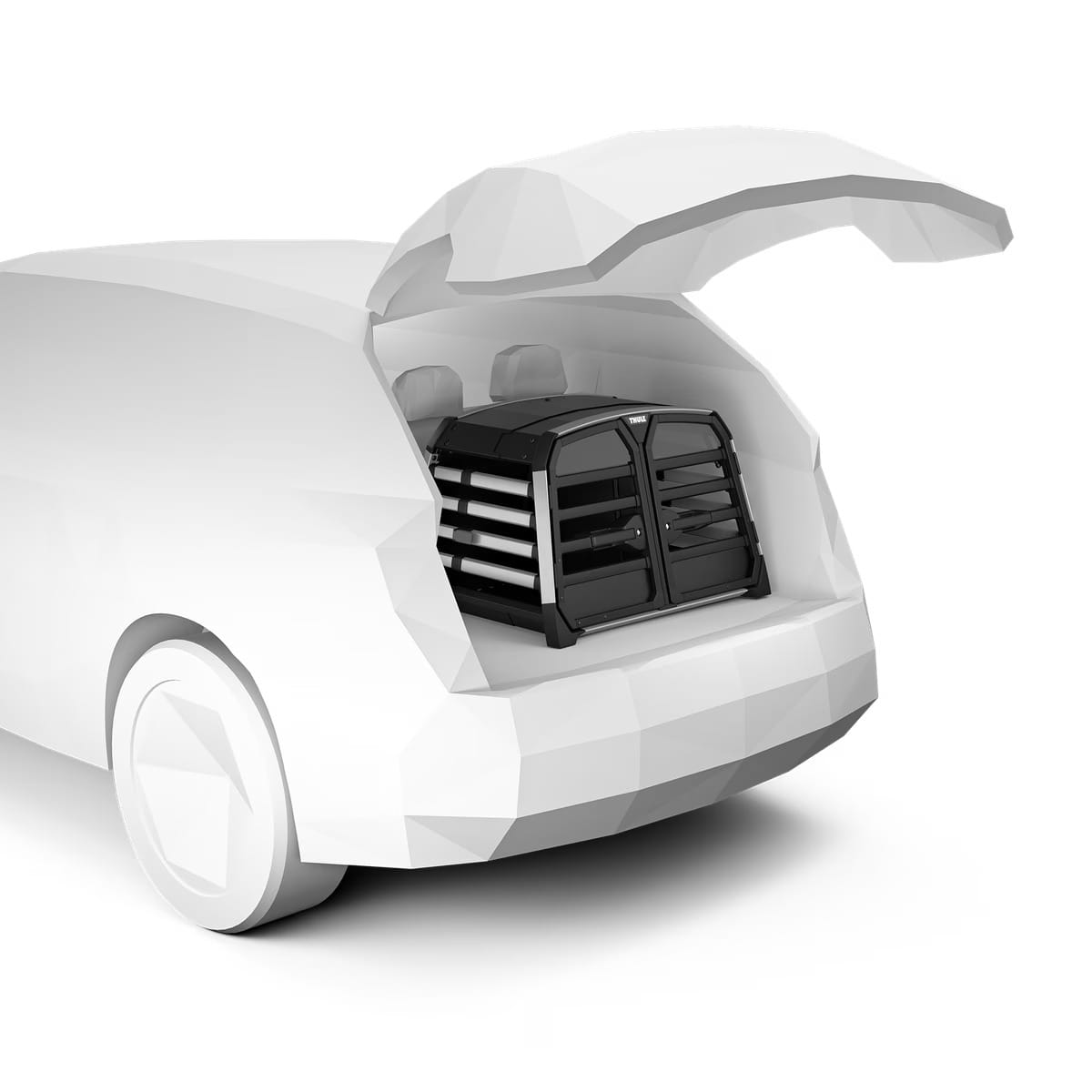 Thule Allax Double to zaawansowana, podwójna wersja cenionej klatki Allax, zaprojektowana z myślą o bezpieczeństwie dwóch psów jednocześnie. Łączy w sobie innowacyjne rozwiązania chroniące czworonożnych pasażerów i wygodę użytkowania na co dzień – od krótkich miejskich wypadów po wielogodzinne trasy. Klatka została przetestowana zderzeniowo w Thule Test Center™ oraz TÜV SÜD, spełniając rygorystyczne normy ECE R17 i ECE R129.