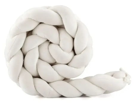 Welurowy warkocz pełniący funkcję ochraniacza szczebelków to praktyczny dodatek do drewnianych łóżeczek marki WALDIN. Warkocz o długości 210 cm, oplata boki łóżeczka nadając mu przytulnego wyglądu oraz chroniąc malucha przed uderzeniami lub zahaczaniem o szczebelki.